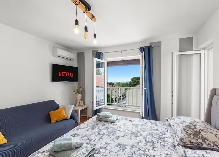 Questo alloggio sul lungomare garantisce il vostro comfort mettendo a disposizione una cucina completamente attrezzata con un bollitore elettrico, un frigo e utensili da cucina. La fermata dell'autobus più vicina Hotel Mediteran si trova a soli 10 minuti a piedi. Gli ospiti possono arricchire il loro soggiorno con attività come mini golf.